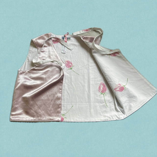 GIL réversible. Premier tissu effet brillant: un satin de coton teint en rose à la main.