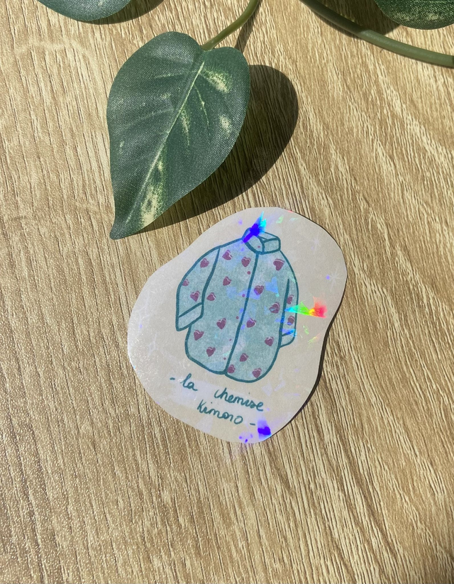 Sticker Chemise Kimono avec finition papier holographique.
